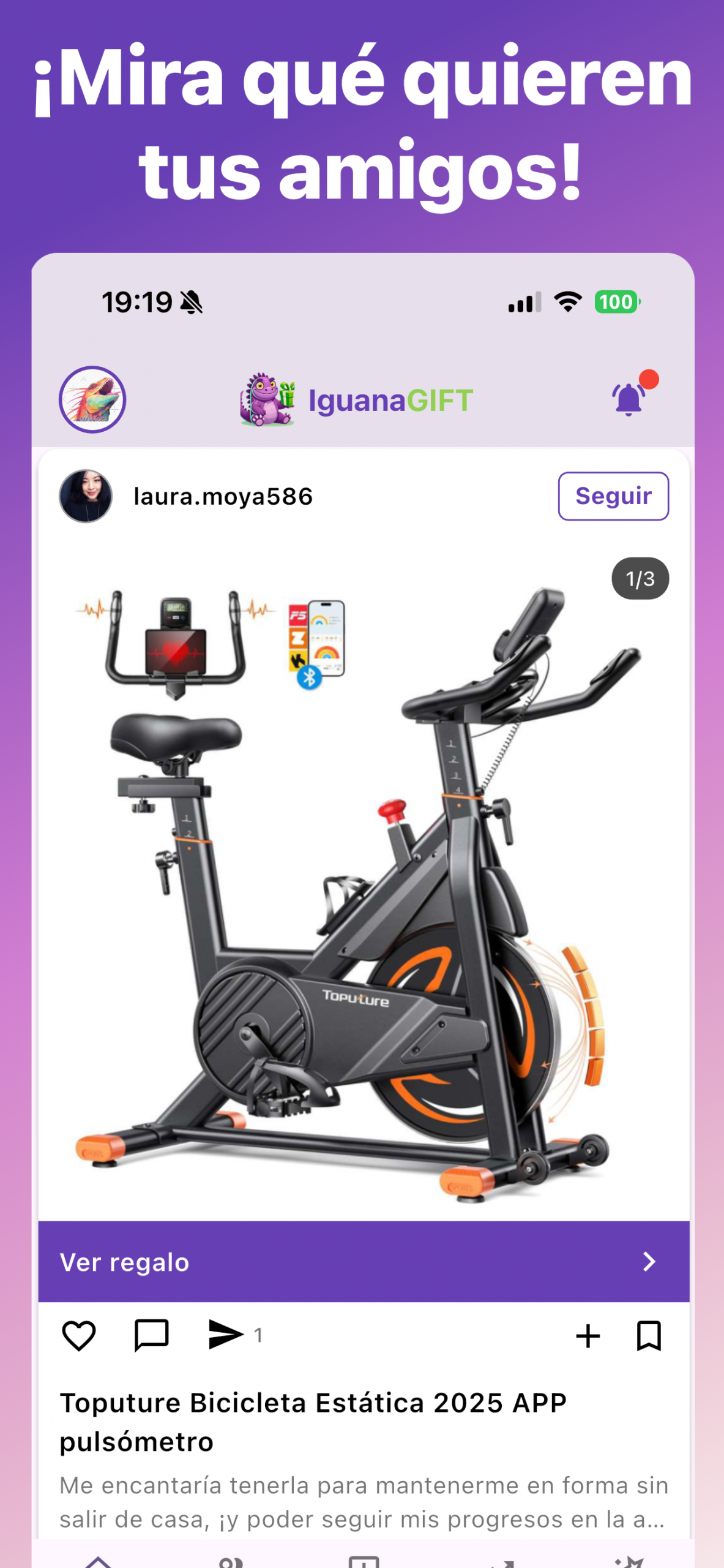 Publica tus regalos y sigue a tus amigos, familiares o creadores de ideas y descubre todos los regalos que les gusta.