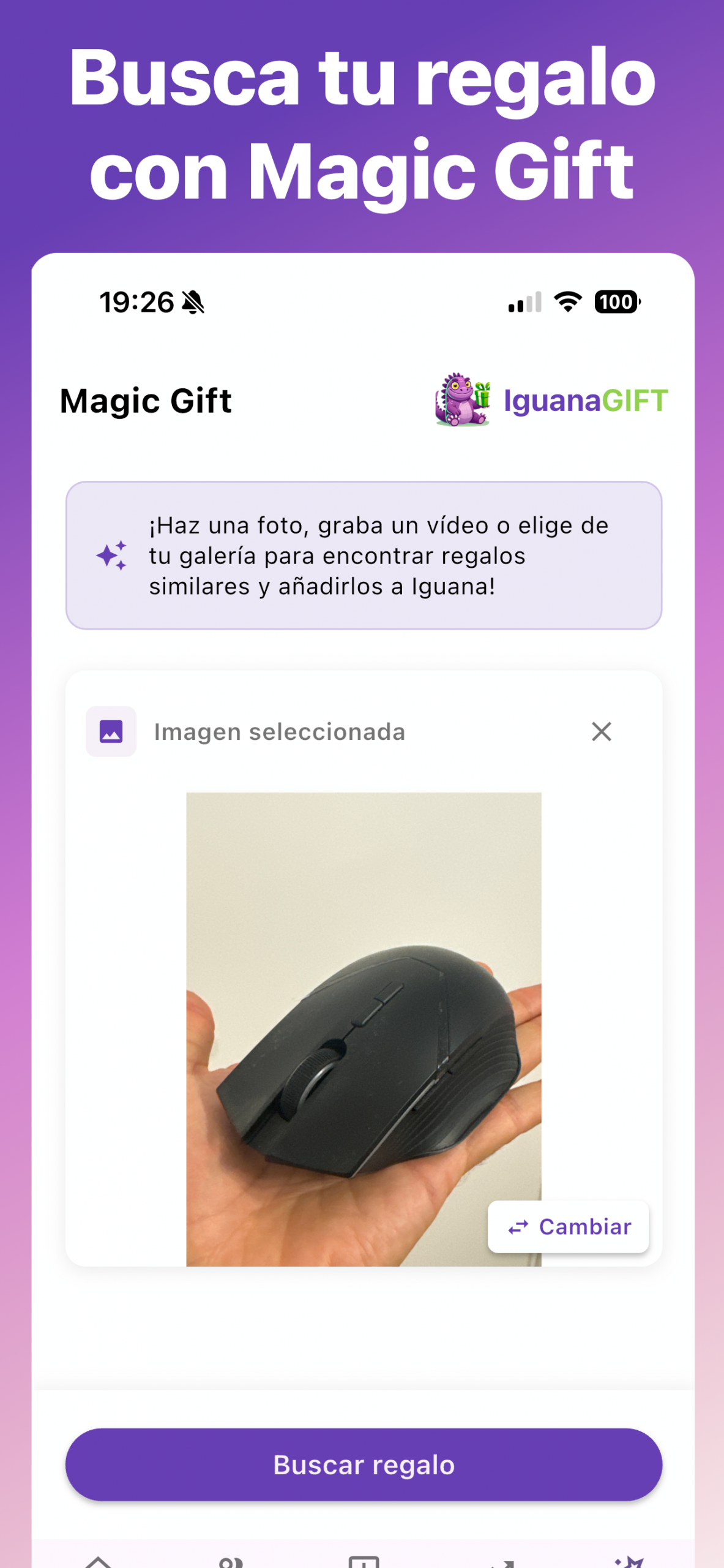 Utiliza el Magic Gift para encontrar el regalo deseado, haz una foto o video o súbela desde tu galería