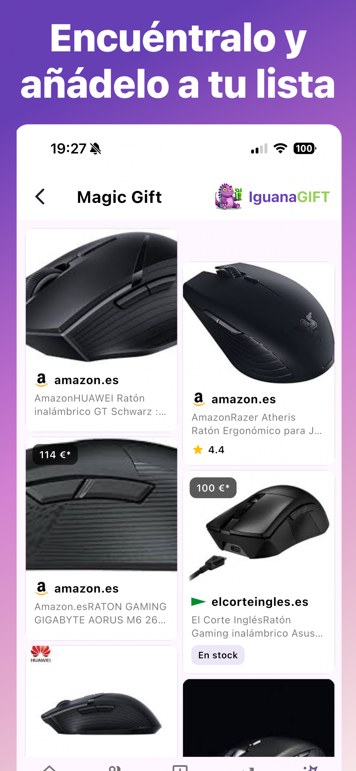 Magic Gift se ha encargado de encontrar el regalo para ti, te muestra los sitios donde puedes comprarlo y lo puedes añadir directamente a tu lista